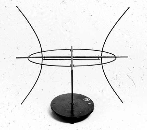 The model consists of a rigid frame representing the focal ellipse and the focal hyperbola of a system of confocal quadric surfaces. The plane of the hyperbola is orthogonal to the plane of the ellipse and contains the major axis of the latter. The hyperbola has the foci of the ellipse as vertices and the vertices of the latter as foci. In one vertex of the ellipse and the non-corresponding focus a loop of string is fixed and placed about the focal conic section in a certain way. It can be shown that all the points one receives by drawing taut the string in any point P are located on an ellipsoid.