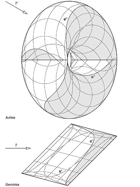 The self-shadow boundary of the circular shear surface, which can be seen in the attached drawing, leads to a remarkable accompanying ruled surface, which is also documented in the collection.