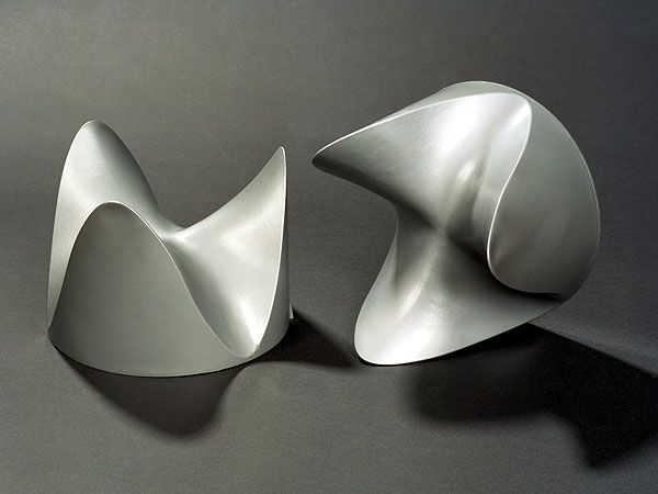 The model shows a surface in which three ridges and three descents meet at a point P such that by a turning about 2pi/3 the surface is transformed into itself. Each normal section through P has a point of inflexion at P and thus its curvature at P is zero. Hence P represents an isolated parabolic umbilical point. Sometimes this surface is called "monkey saddle".