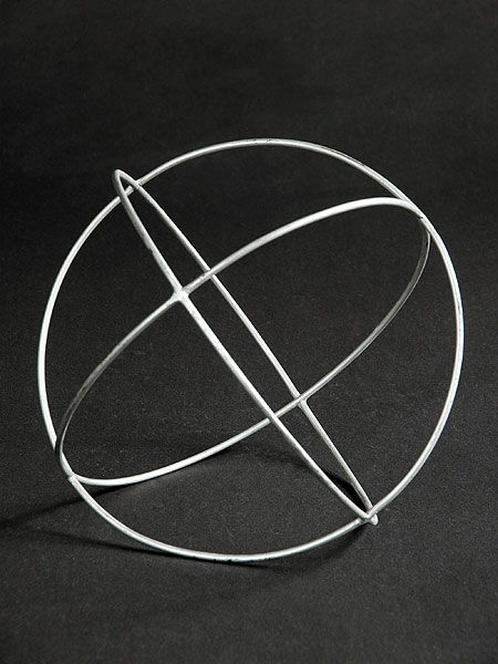 Sphere (large circle model) The model shows three great circles of a sphere that intersect orthogonally in pairs.