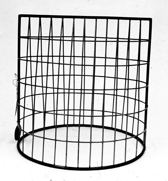 The model represents a special right conoid, which is the locus of a line perpendicular to a fixed line, called the axis, and intersects the circumference of a circle whose axis intersects this fixed line at a right angle. The generating lines of the conoid are to be seen, further its intersection with planes parallel to the plane of the circle.
